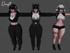 Assets: goat set, husky set, glasses, hat, long hair, wolf cut, short hair, arm warmers, arm fishnets, fishnets, garter, stickers and choker
