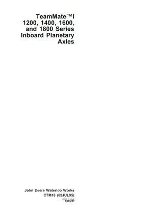 John Deere TeamMate I 1200, 1600 and 1800 Inboard Planetary Axles Manual CTM18