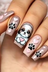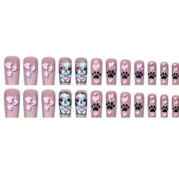 24 pieces of dog nail art design. Safe and durable material: These press-on artificial nails are made from high-quality ABS acrylic material. They are environmentally friendly, gentle on your natural nails, and resistant to breaking, ensuring long-lasting wear.