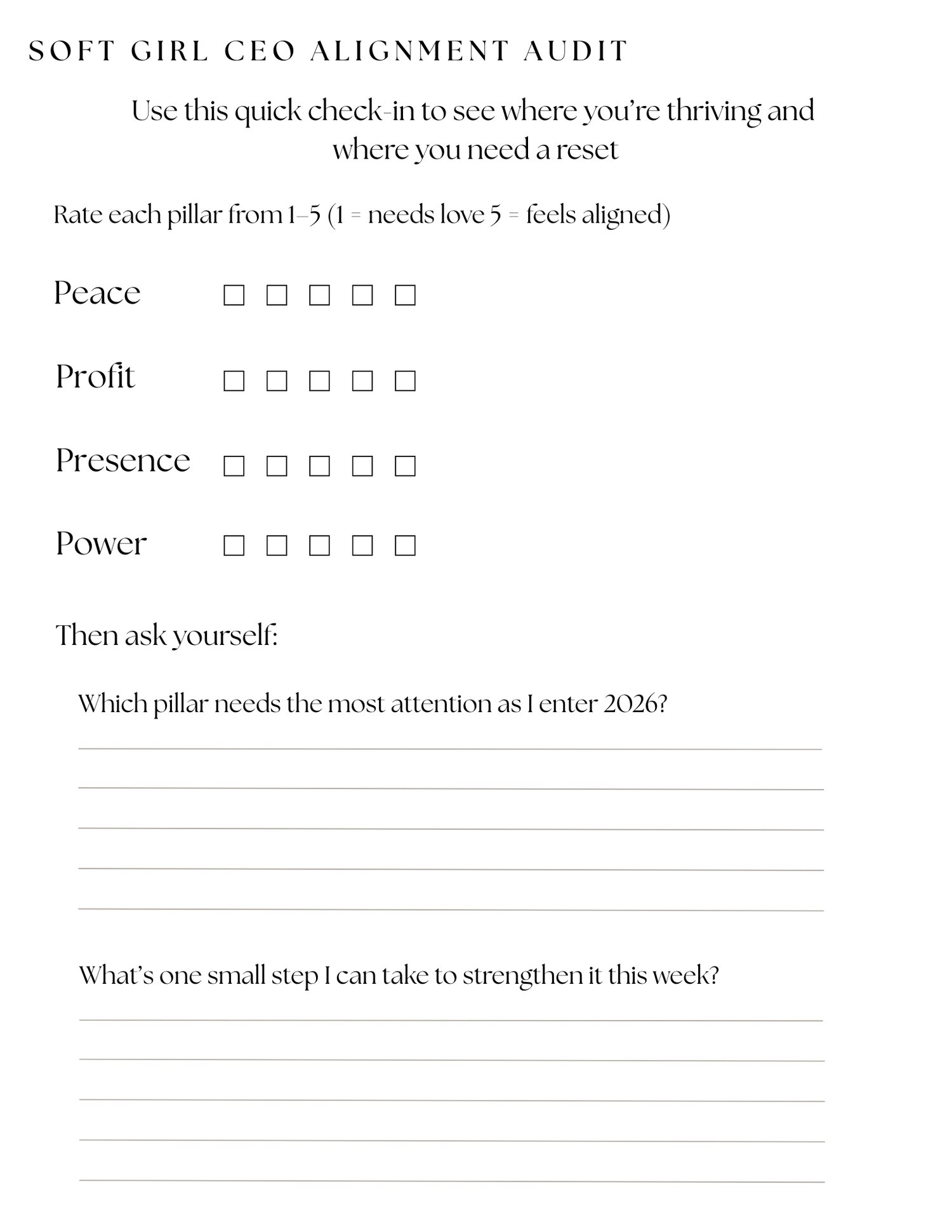 - A Soft Girl CEO Alignment Audit to find where you need more balance