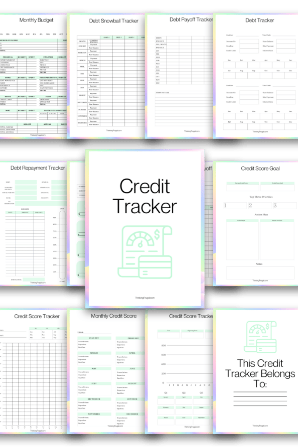 - This bundle includes 13 total pages. Includes cover page, belongs to page, credit score tracker, monthly credit score, grid credit score tracker, credit score goal, credit card payoff tracker, credit card tracker, debt repayment tracker, debt tracker, debt payoff tracker, debt snowball tracker, and simple monthly budget worksheet.