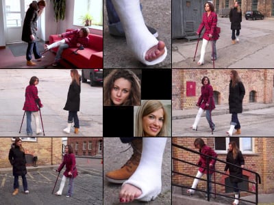 (English) A foot play festival. When Beatrice and Carrie both find themselves in the orthopedists waiting room waiting, one with a cast and the other with a sprain, they spend their time checking out each other's handicap footwear, playing with each other’s toes, playing footsie, competing for who is best at picking up objects with their exposed toes, Carrie Shoving a pencil deep inside Beatrice's cast to scratch an itch on the bottom of her casted foot (see Beatrice's genuine relief), cast signing, trying out Beatrice's crutches and in general wiggling, curling and splaying their toes. Great Closeups and POV's and a must see for foot play fans.
