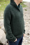 A rugged woolly sweater with a raglan sleeves and warm double collar to keep him warm and safe inthe northern winds.