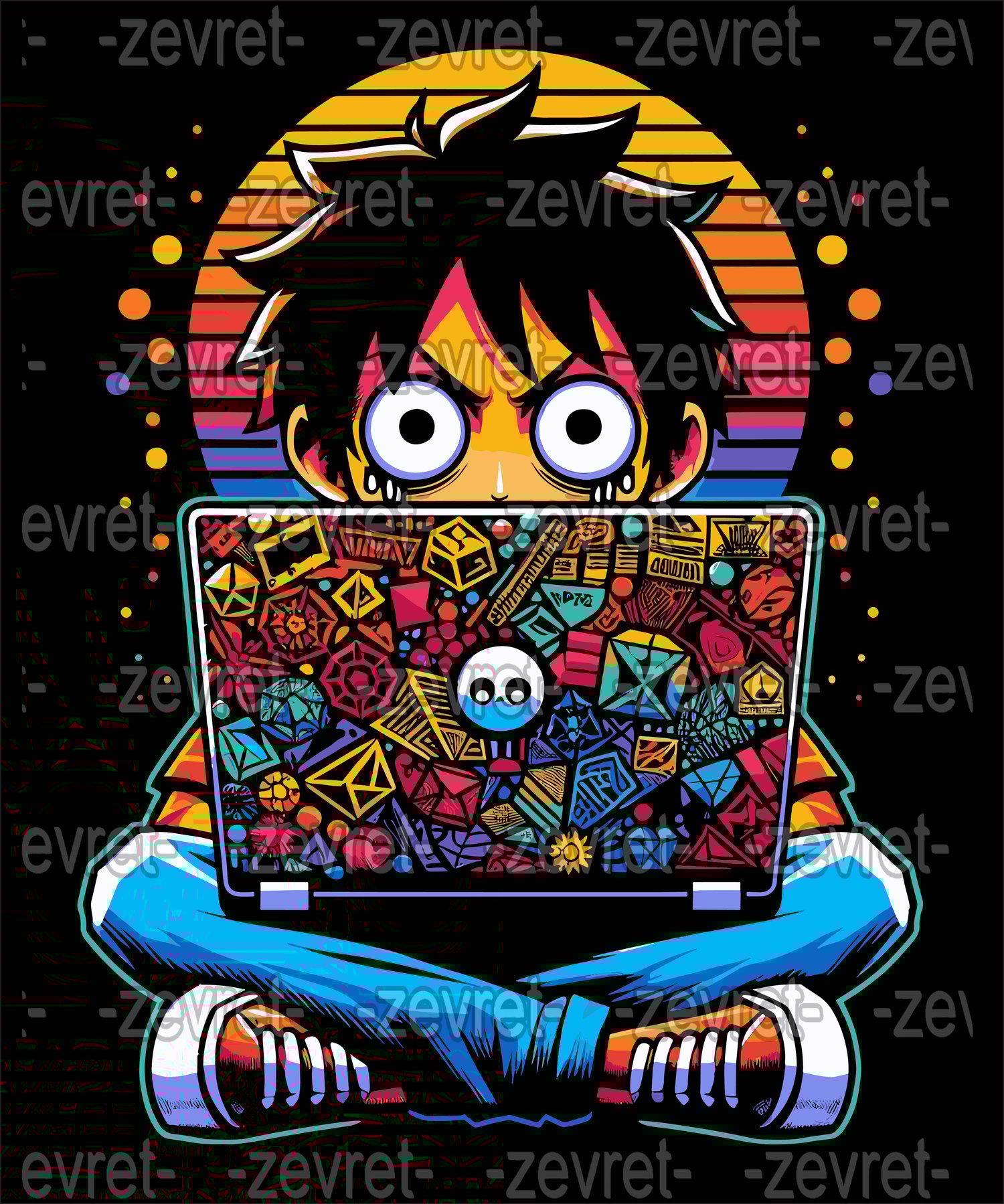 D Luffy Using a Laptop