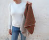Two-tone square shawl, preferably worn double as a normal triangle scarf. It's extra warm exactly because of its thickness and made from a wool blend yarn of 50% merino wool, 25% alpaca, and 25% viscose.