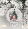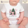Celebrate your baby girl's first Christmas with our charming baby bear design set in soft baby pink. Perfect for creating personalised baubles, pyjamas, t-shirts, and more, these designs feature an adorable baby bear amidst a Christmas tree and nutcrackers, ensuring your holiday creations are extra special.