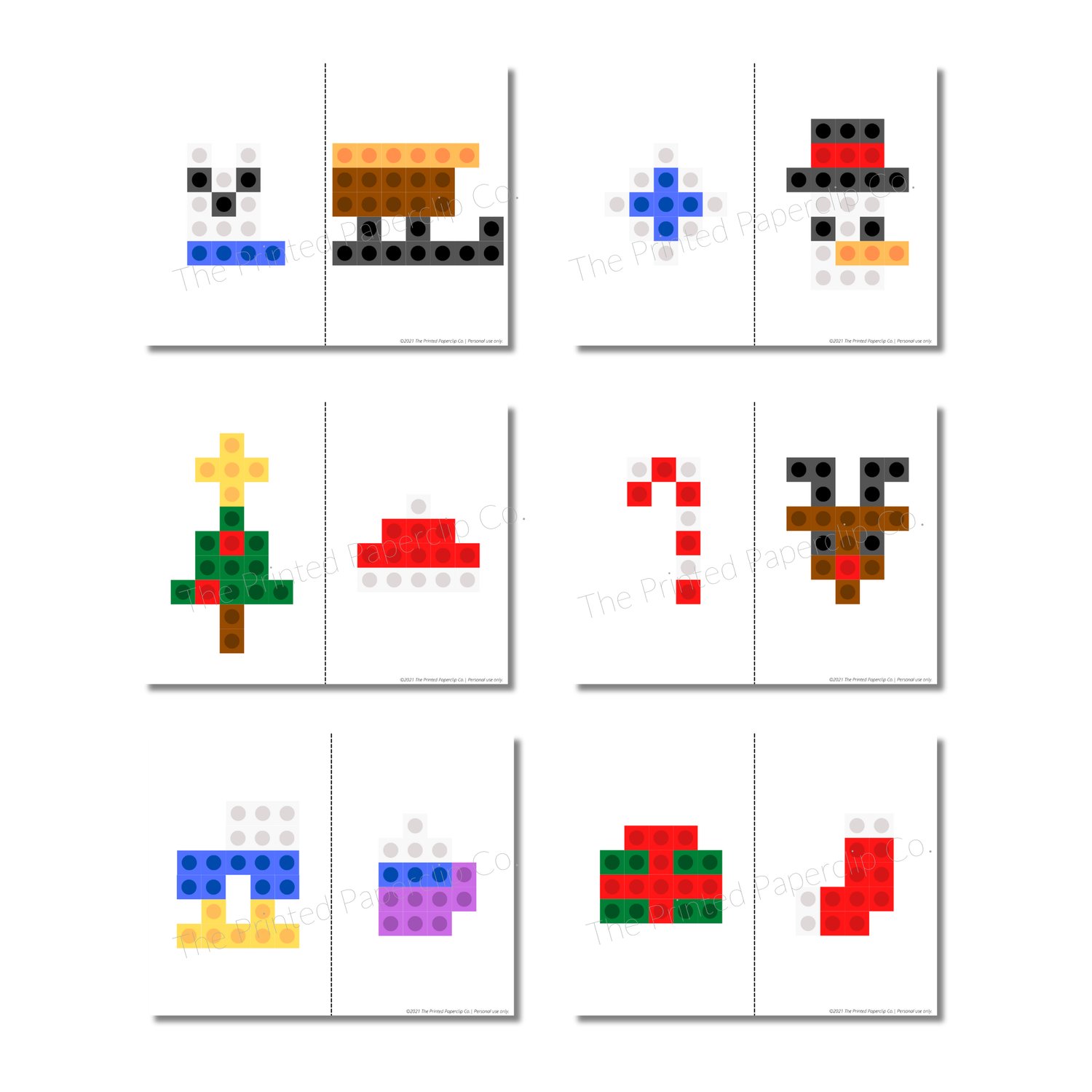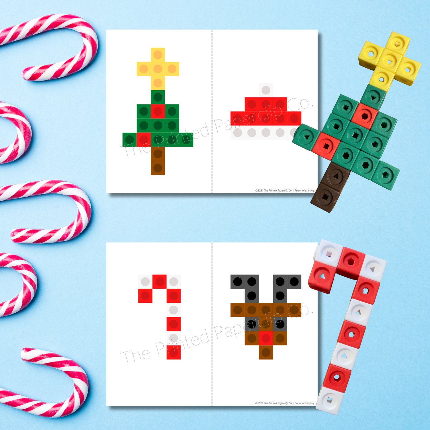 • 1 high-quality PDF file (non-editable) with 6 printable Christmas snap cube building cards