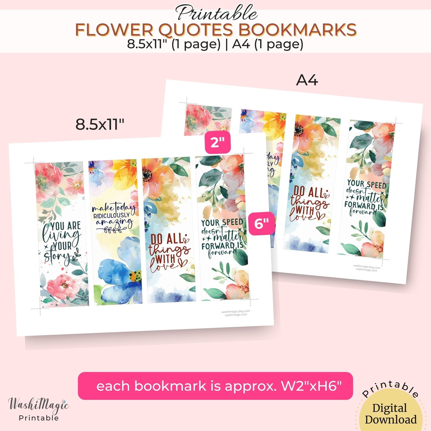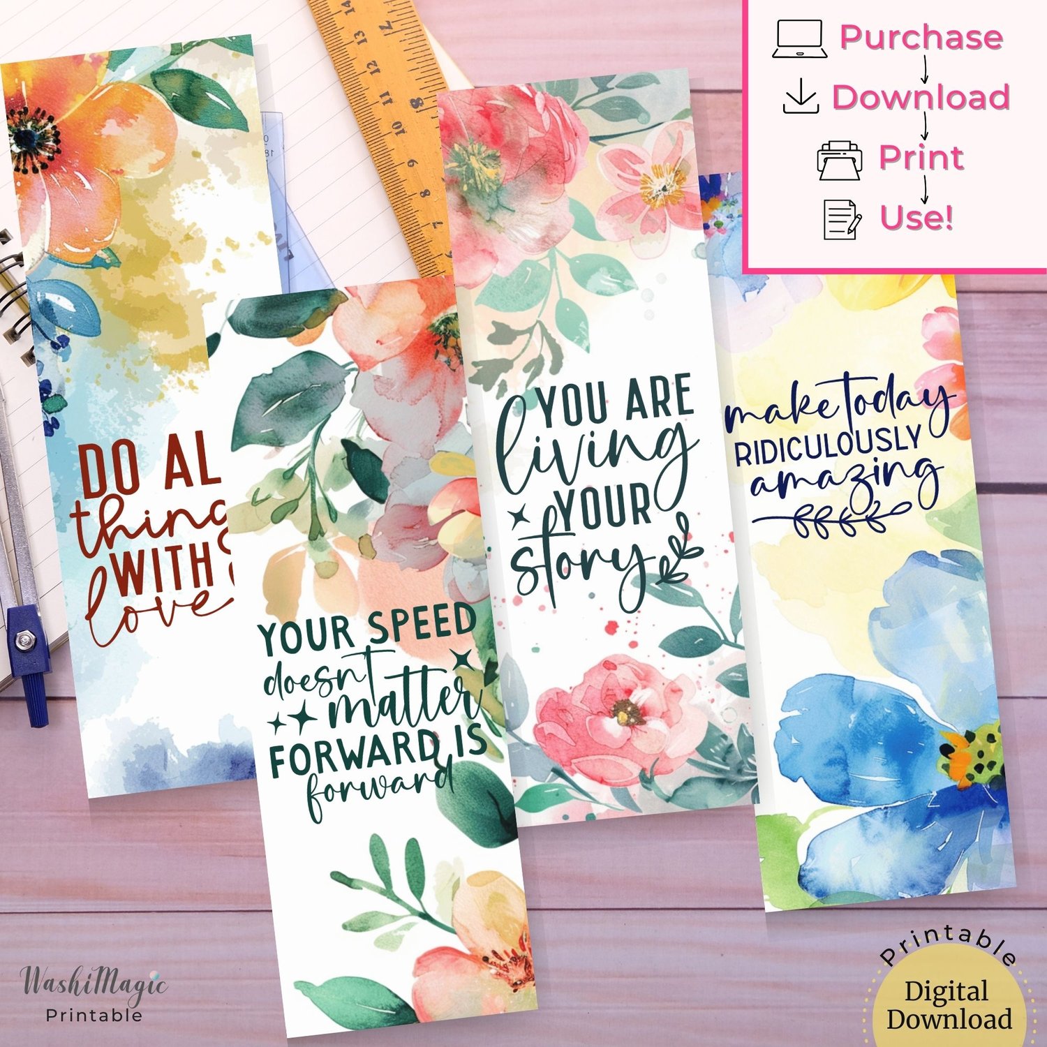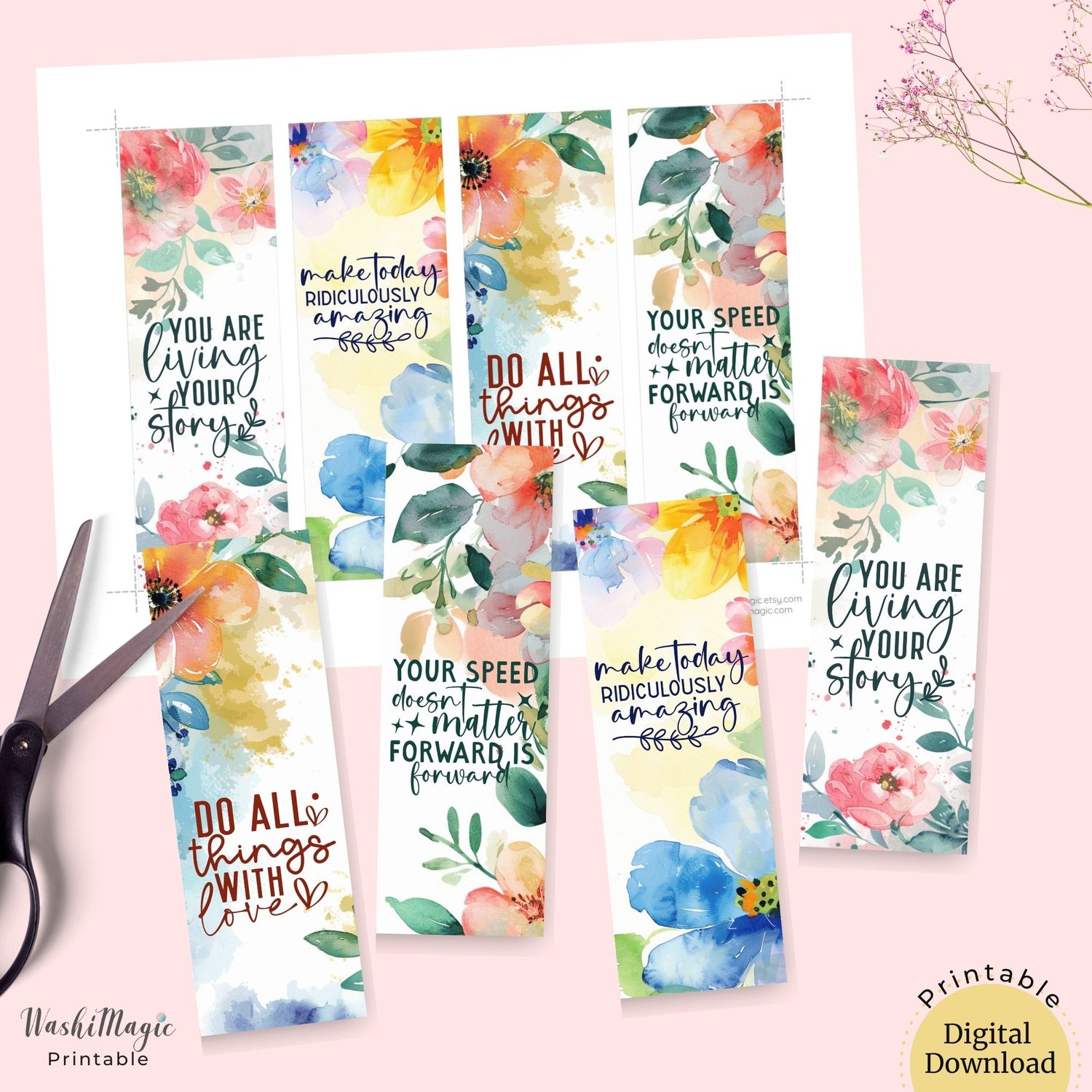 Each bookmark showcases stunning floral designs and encouraging messages to motivate you during your literary adventures. Ideal for personal use or as thoughtful gifts. Enhance your bookshelves and promote positivity with this delightful watercolor flower bookmark set today!