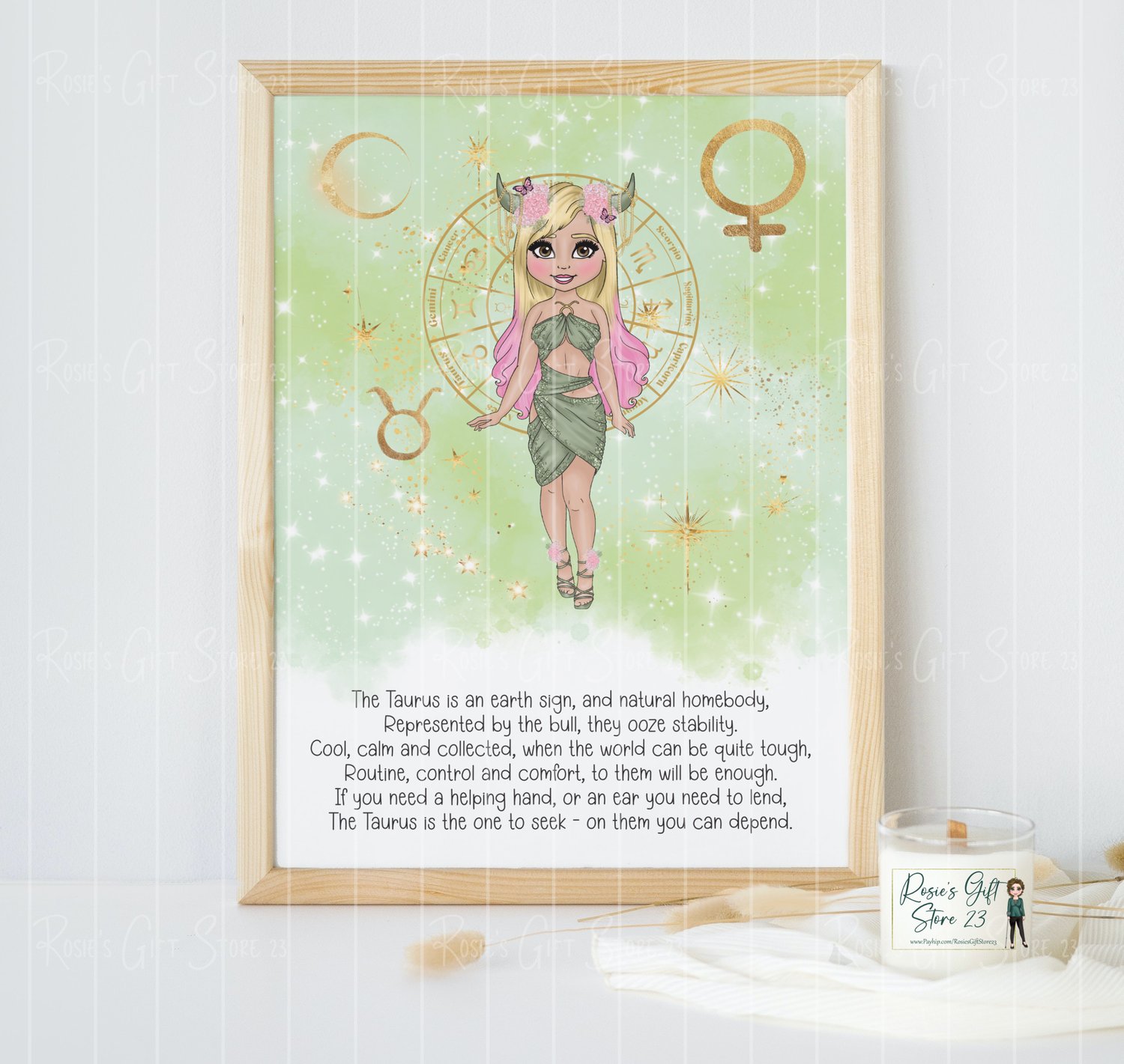 This stunning Taurus Print comes with a unique poem (Poem is under copyright, please do not use it), printed on high quality card paper (300GSM) & is available in the following