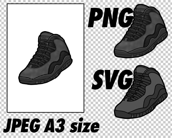 Air Jordan 10 Shadow JPEG PNG SVG digital sneaker art