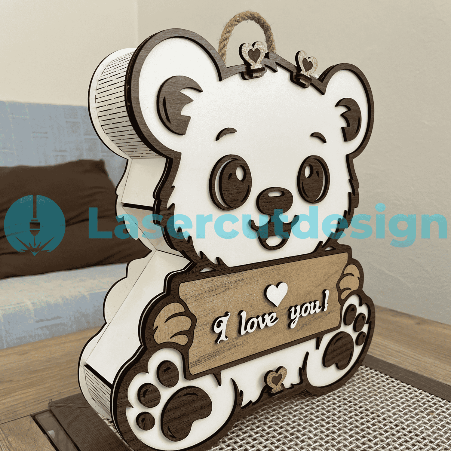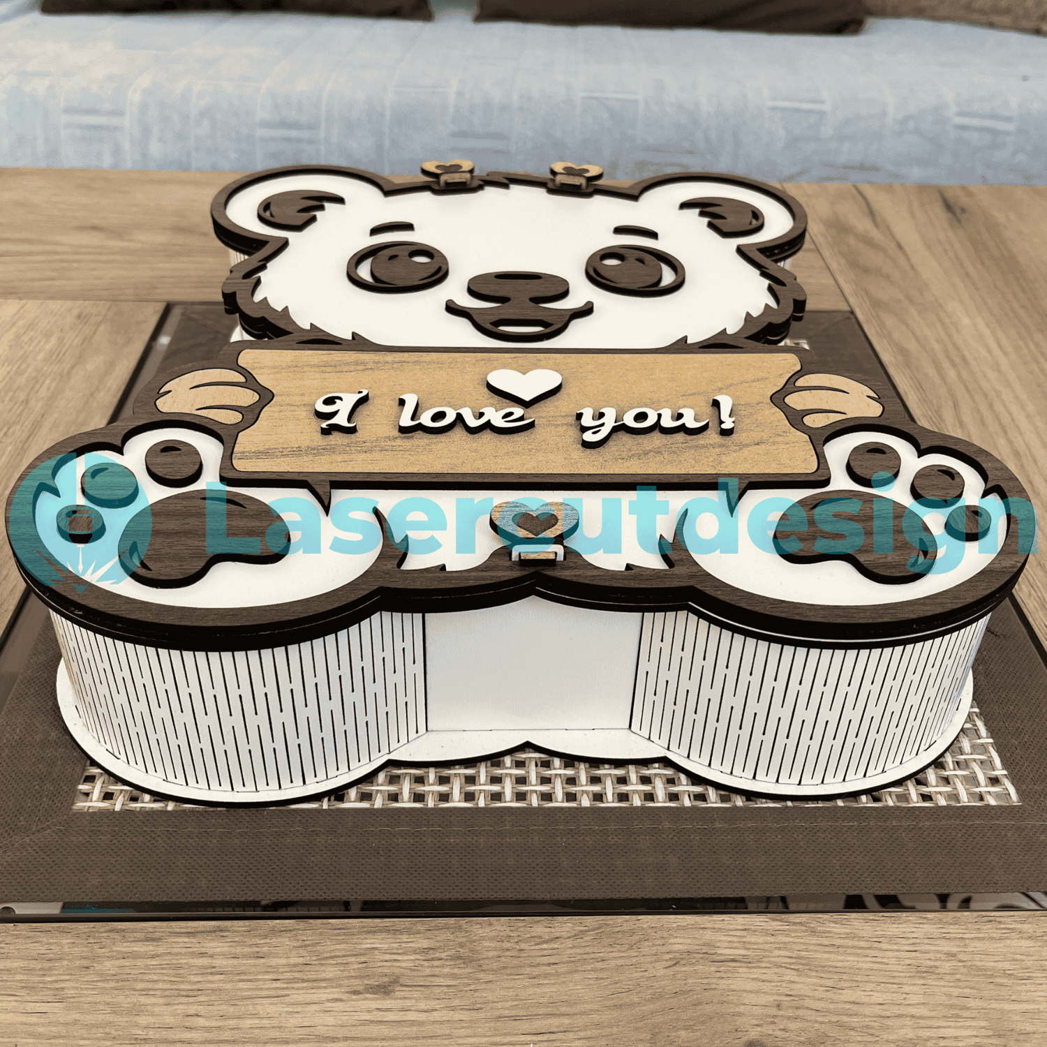 Teddy Bear Gift Box SVG DXF AI | Bear Shaped Box Laser Cut File | Teddy Bear Box 3mm | Cute Gift Box Laser