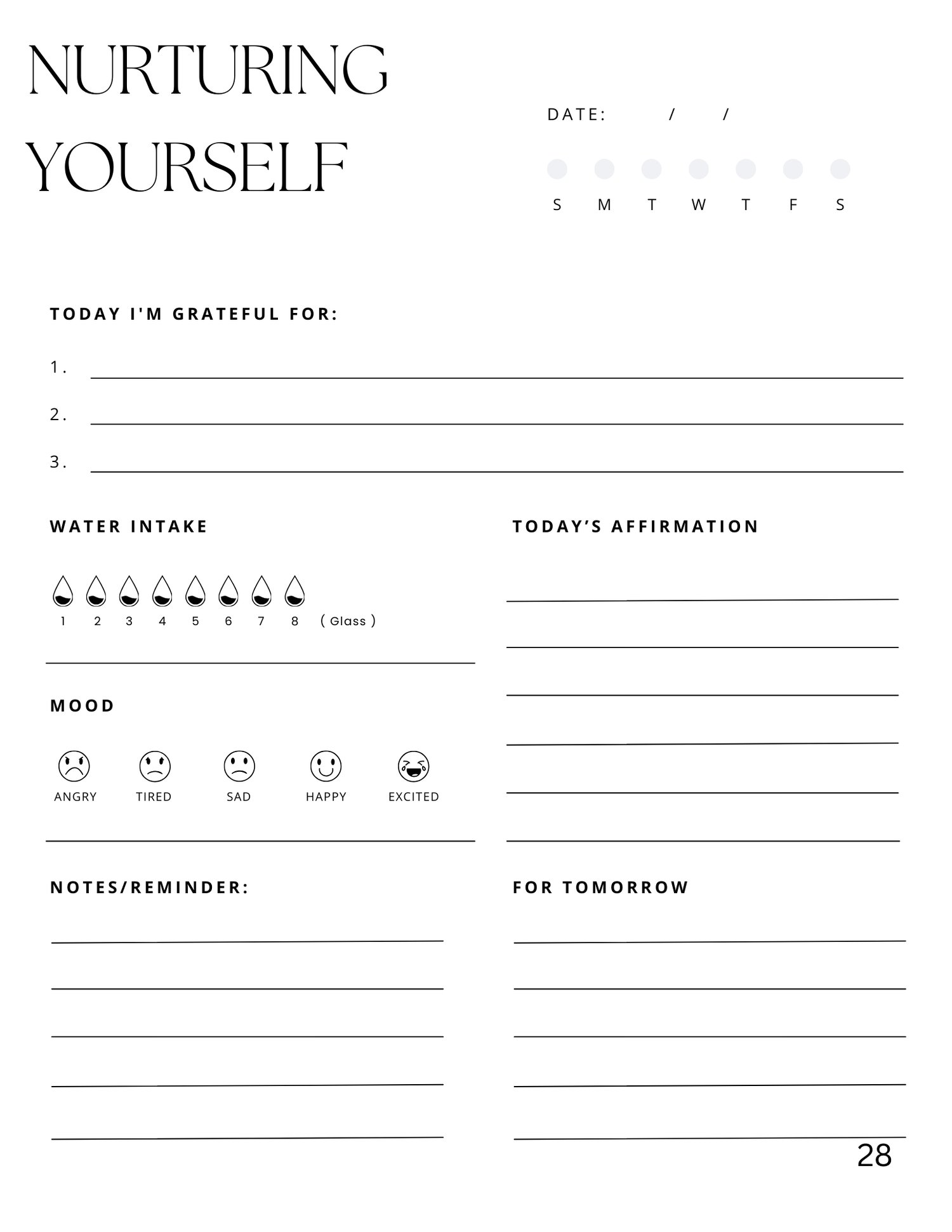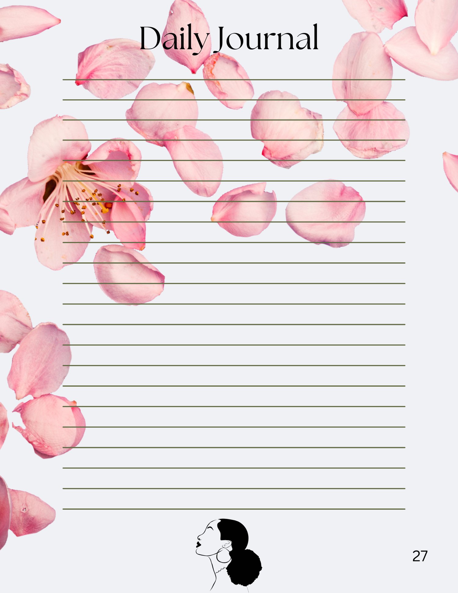 Seize this incredible opportunity! If you are seeking healing and a pathway to self-care, don’t miss my e-book journal, "My Chronicles." This thoughtfully crafted journal is here to help you prioritize your well-being and embrace self-discovery. With insightful questions for reflection, it supports your healing journey and encourages you to explore different aspects of your life. Whether you're well on your way to recovery or just beginning the process, there's always room for growth. Take this essential step toward nurturing yourself and achieving balance in your life. Designed to be fillable, my journal eliminates the hassle of adding boxes to each section and works seamlessly with all software, including Microsoft and Apple products. For an enhanced experience, I suggest downloading GoodNotes or Adobe to fill it out effortlessly. Viewing it in a two-page layout will allow you to experience the joy of flipping through pages, ensuring that everything connects beautifully.