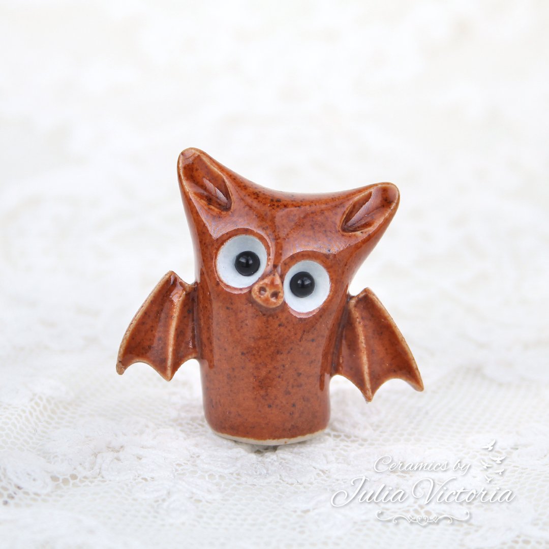 This cute little bat is looking for a new place to sleep. It is hand-sculpted in ceramics, glazed and painted by me