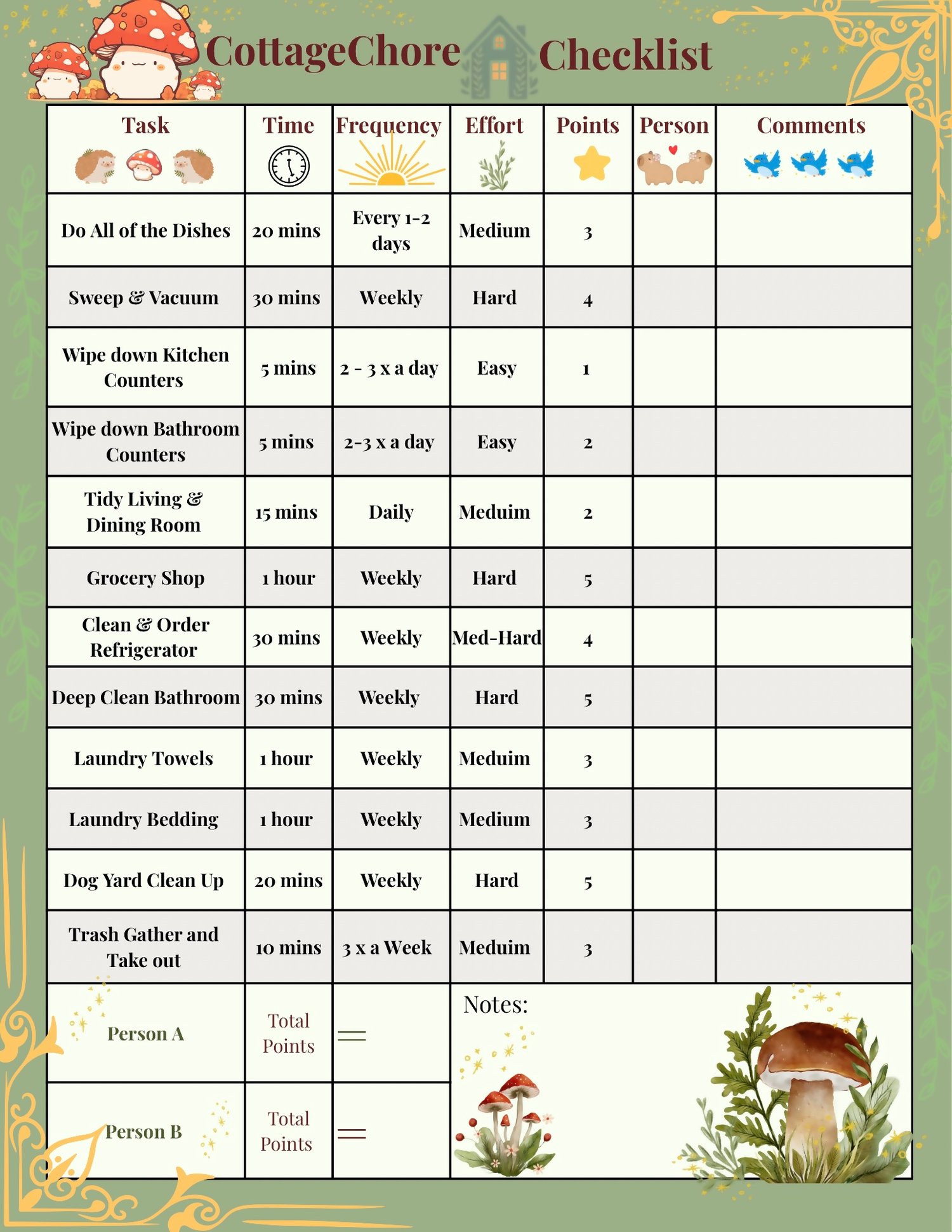 Use it to make chores feel cozy, balanced, and fair - create rewards to go with your point system or enjoy a tangible acknowledgement of your house tending efforts!