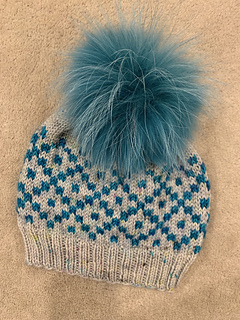 The hat uses 2 skeins of DK yarn and has a simple stranded color motif. It is named after Kemper of Junkyarn’s adorable pup, Frankie, who is just too cute for words.