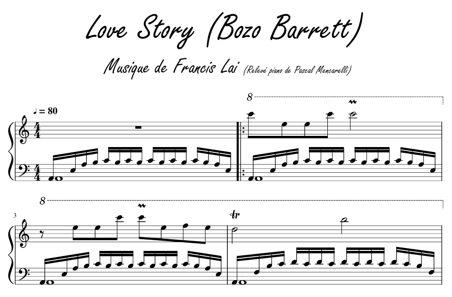 Francis Lai - Bozo Barret (Love Story) - Piano + Sheet Music