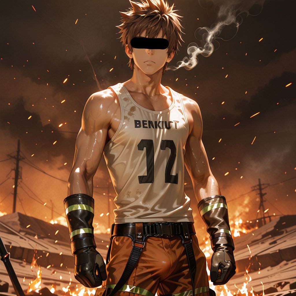The theme is ""work scenes"" of firefighters, and the charm of the masculine characters of the firefighters is boldly expressed.