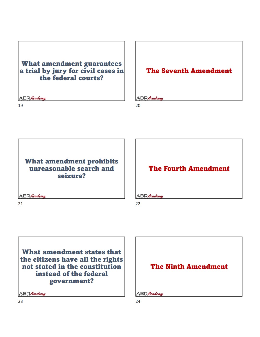 Get familiar with the bill of rights. Can you list all of the amendments in the Bill of Rights? If not, this is a great resource to help you memorize them.