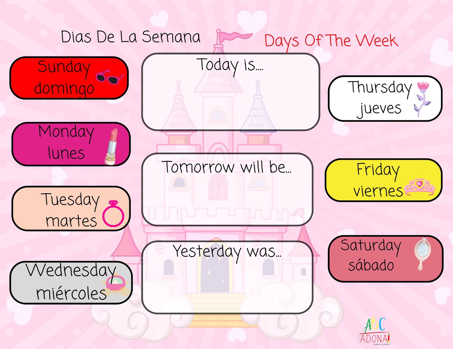 - Pareo de los dias de la semana ¿que dia es hoy? ¿Que dia sera mañana? ¿Que dia fue ayer?