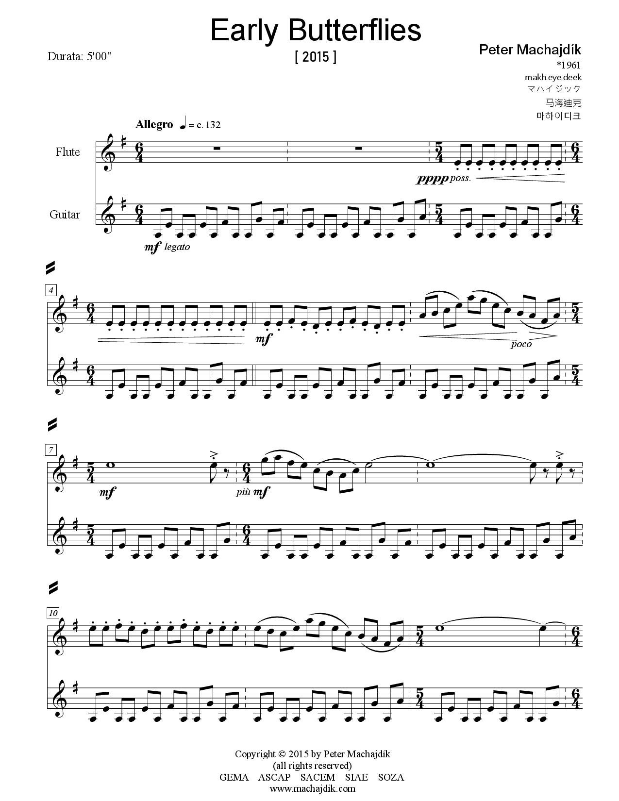 Peter Machajdík: EARLY BUTTERFLIES for flute and guitar (Digital Sheet Music) [score and parts]