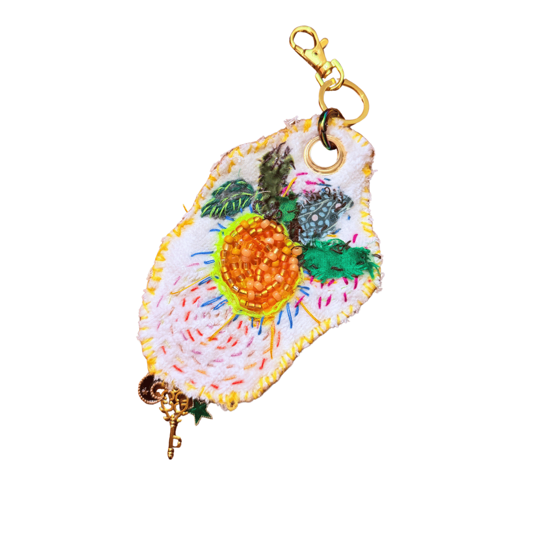 When I make something, nothing gets thrown away. Scraps turn into brooches, bag charms, and small, one-of-a-kind pieces—each a little more personal than anything I could plan.