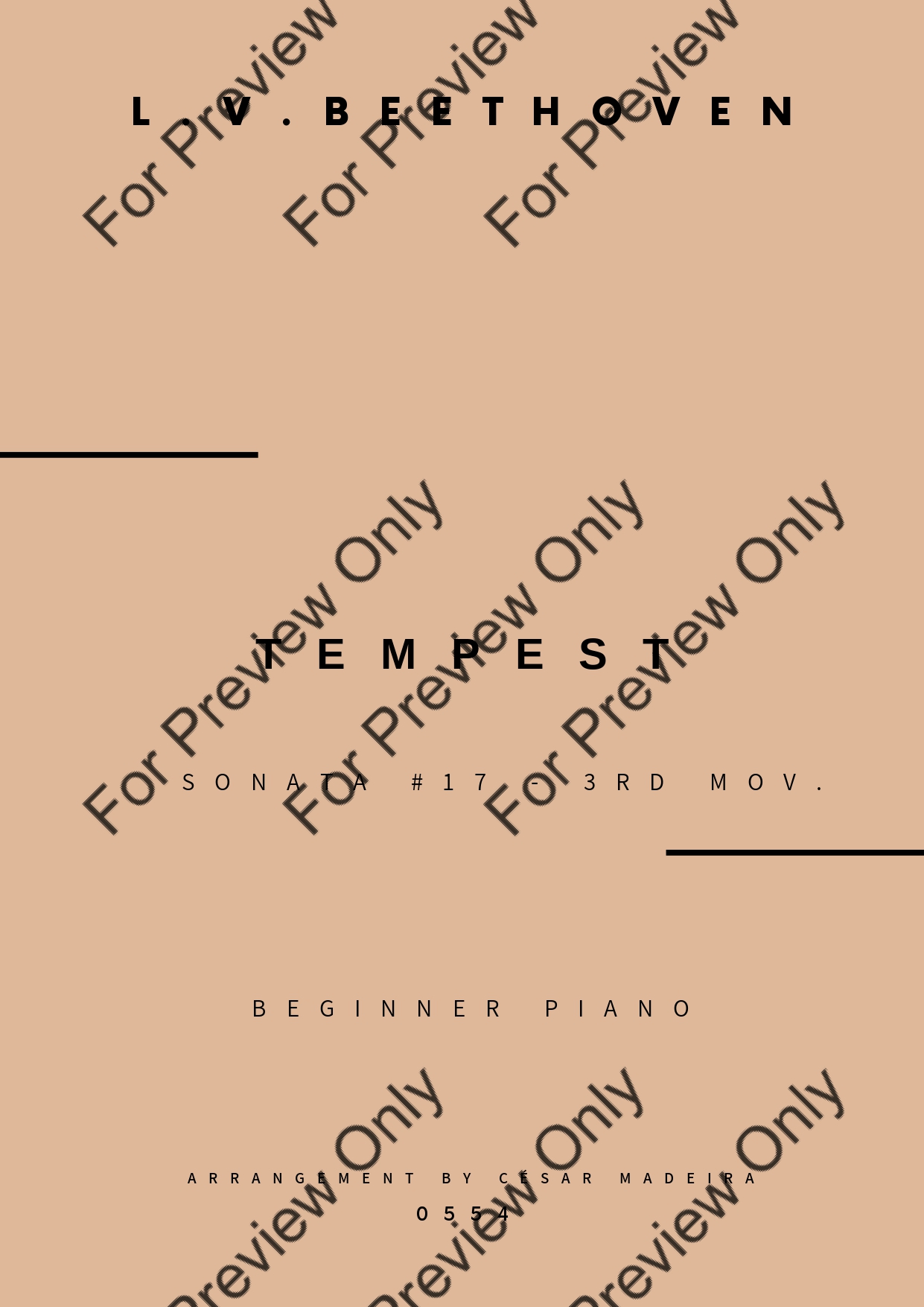 Tempest Sonata by Ludwig Van Beethoven. Arrangement for Beginner/Easy Piano. With Full Score. Have fun!