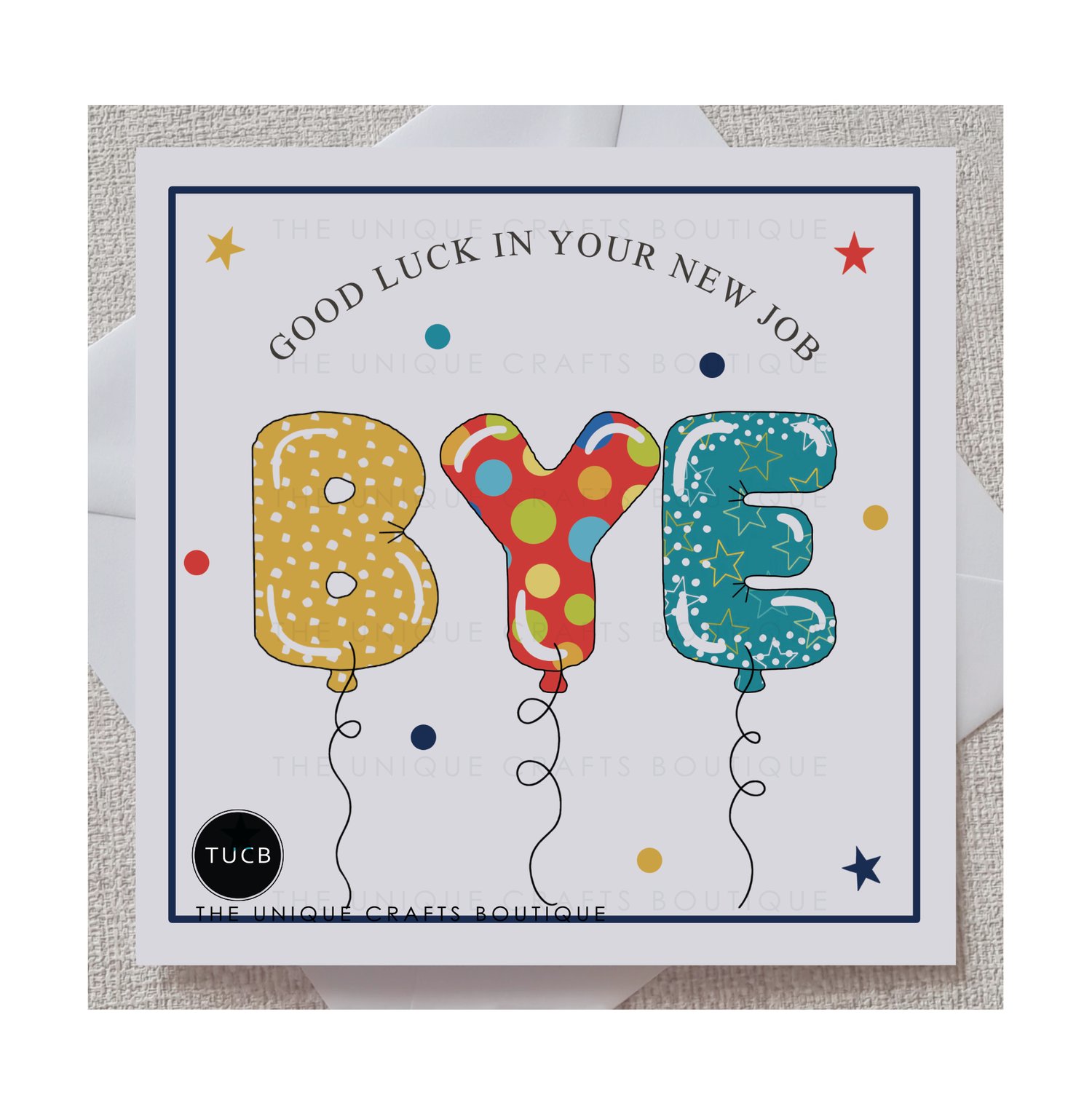 printed with 'Good Luck in Your New Job - Bye' and a blank greeting inside, this card can be used for any anyone leaving their job.