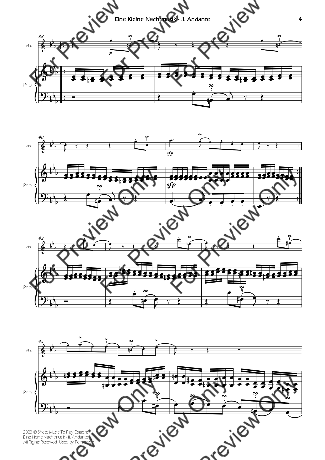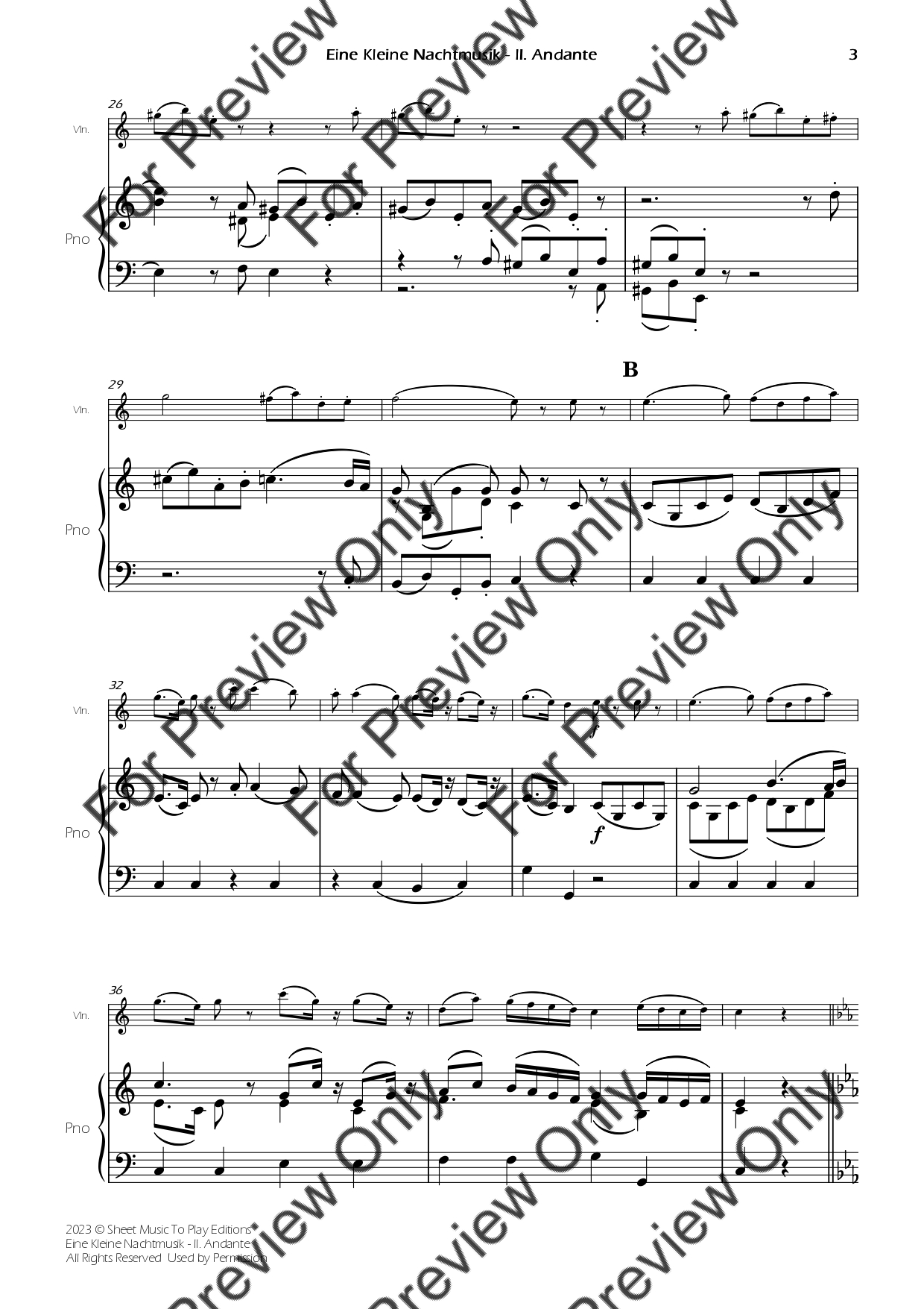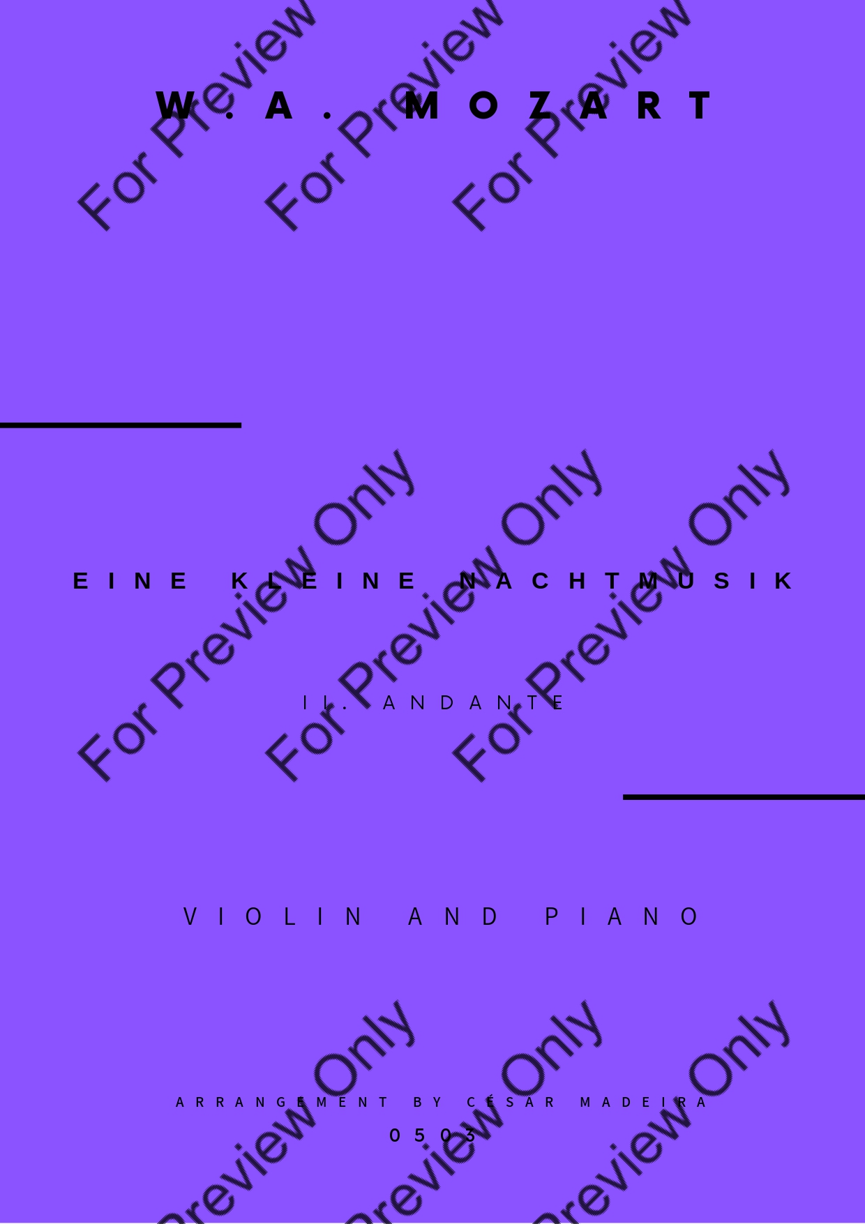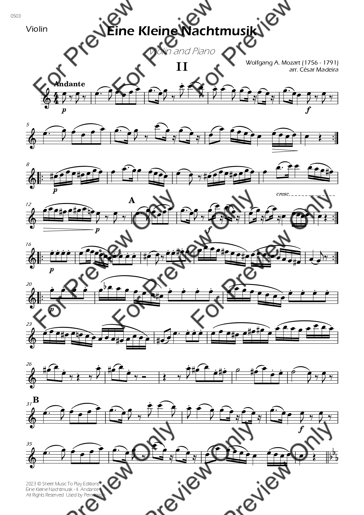 Eine Kleine Nachtmusik (2 mov.) by Wolfgang Amadeus Mozart. Arrangement for Violin and Piano. With Full Score and Individual Parts. Have fun!