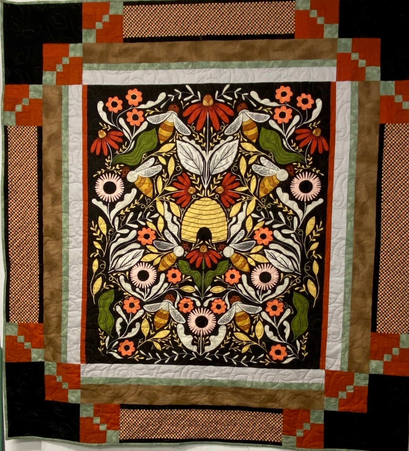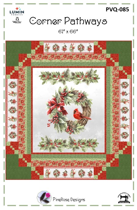 #pinerosedesigns #cornerpathways #whiteowltextiles #featheredfestivities #lumin #islandbatik #lapquilt #panel #borderprint