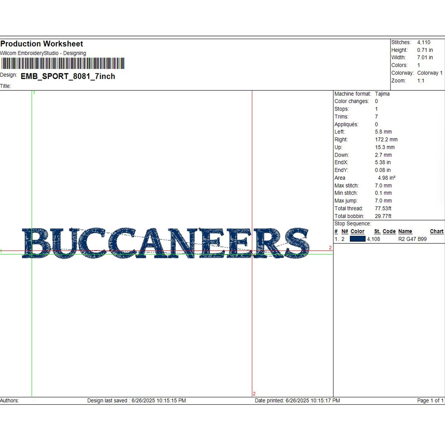 NCAA Buccaneers Football Team Writing Logo Embroidery Files, NCAA East Tennessee State Buccaneers Team Embroidery, NCAA College Football Teams, East Tennessee State Team Emroidery, 3 sizes, Machine embroidery designs, Digital Download