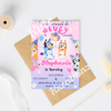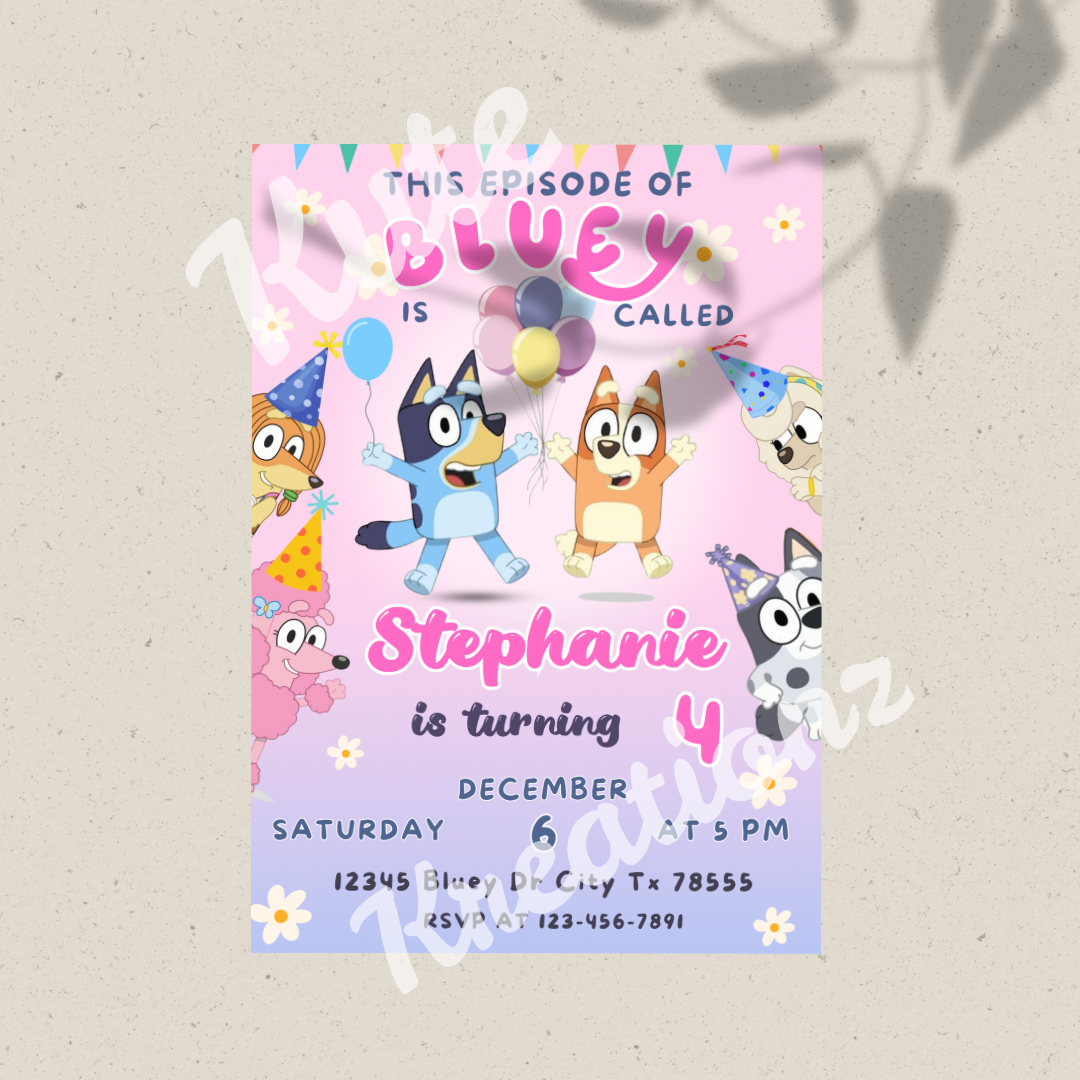 Celebrate your little one’s special day with our adorable Blue dog birthday invitation!