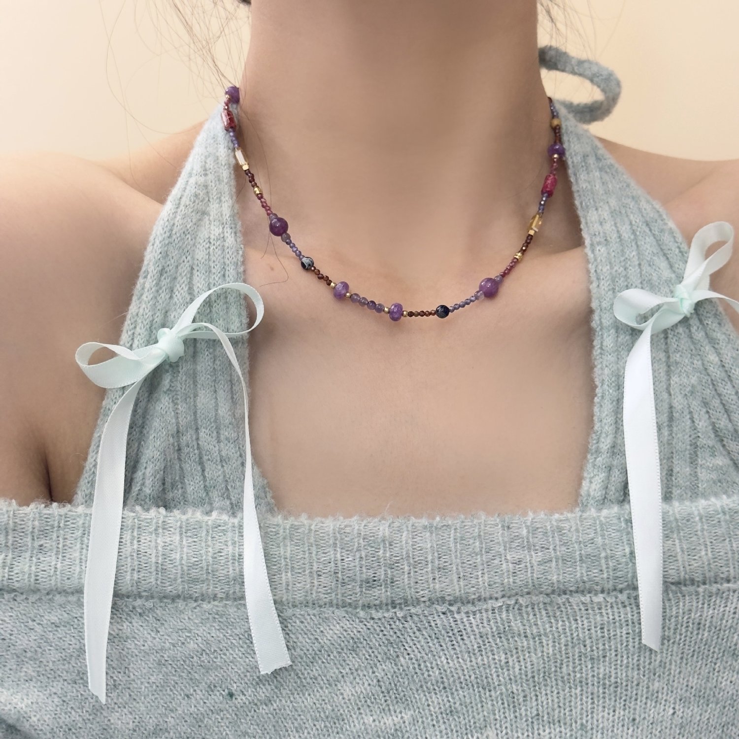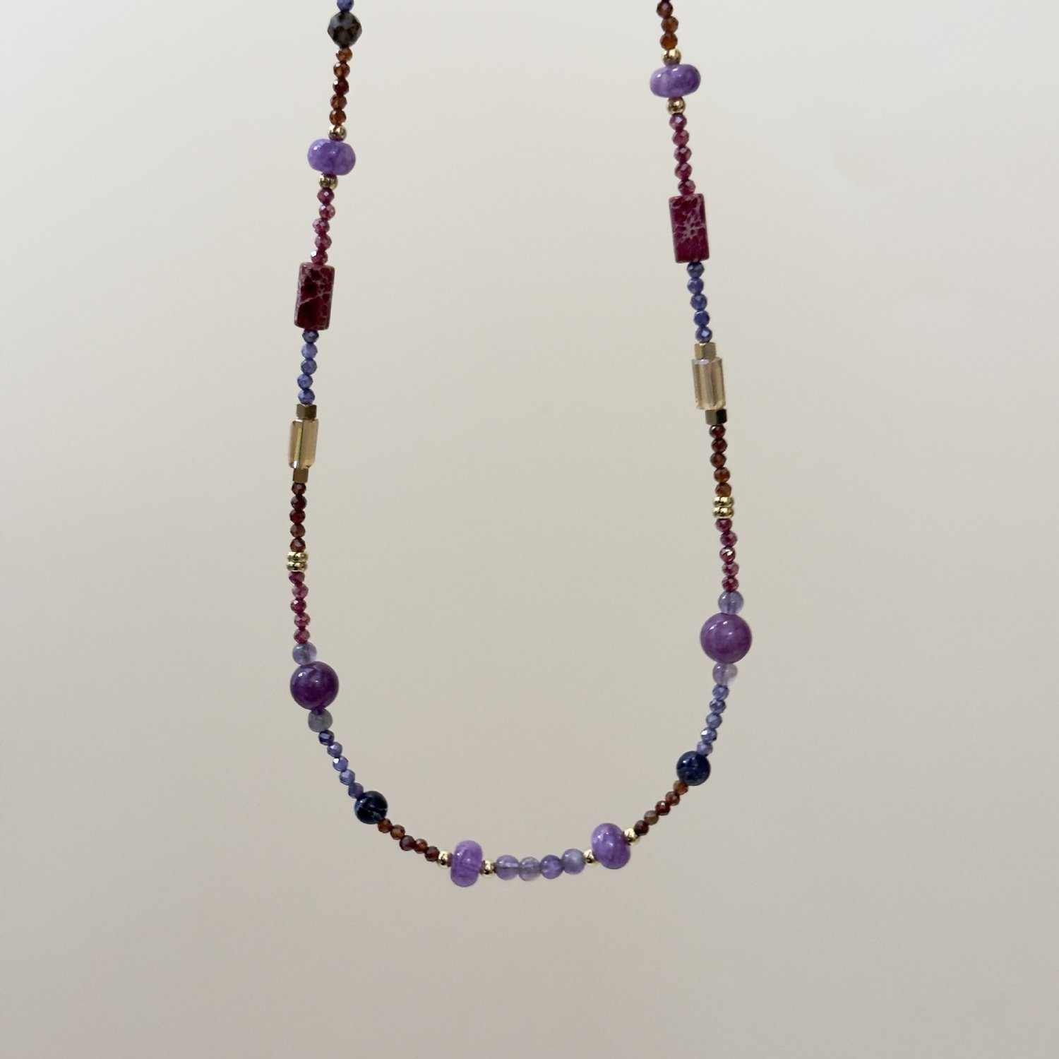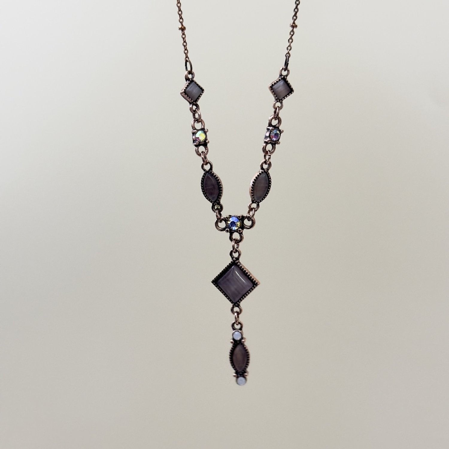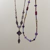 French vintage style rose gold boho ethnic handmade purple beaded stacking pendant necklace