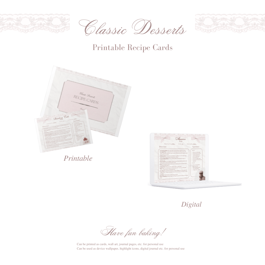 Classic Dessert Recipe Cards (Printable)