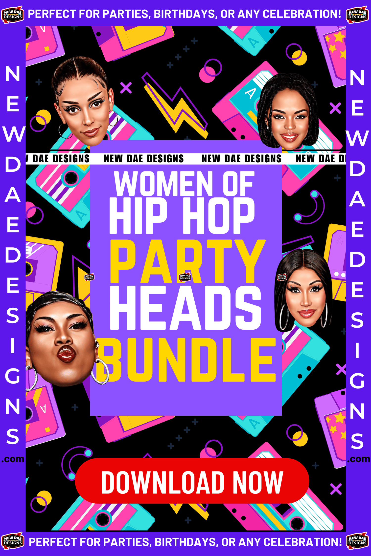WOMEN OF HIP HOP PARTY HEADS Bundle – Printable PDF