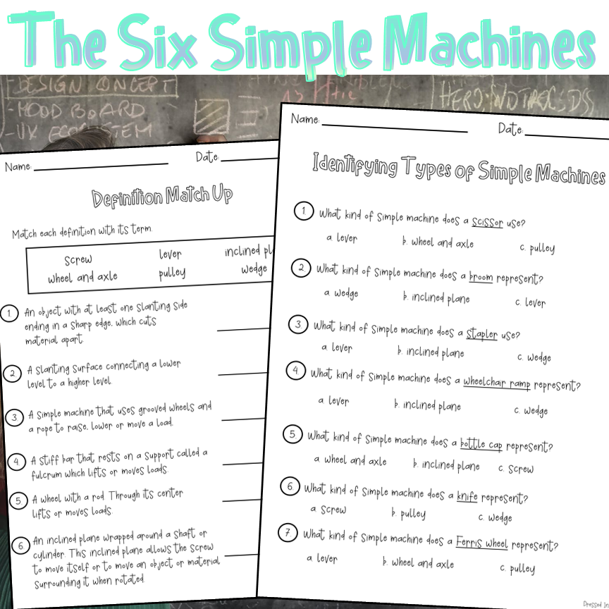 The Six Simple Machines Worksheets Flashcards and Flip Book