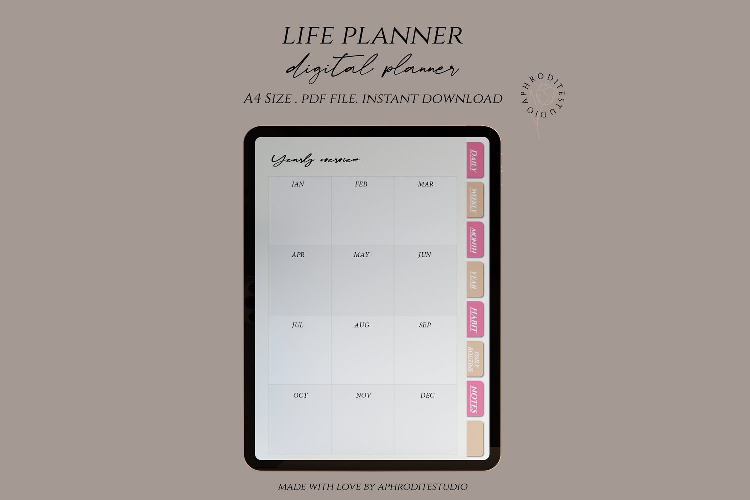 This digital planner has been thoughtfully designed to help you increase productivity, achieve all of your personal goals, and taking care of your wellbeing.