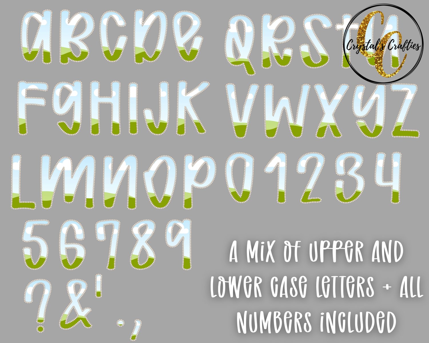This bundle includes a complete mix of upper and lowercase letters plus all numbers, making it perfect for creating names, monograms, phrases, and custom designs.