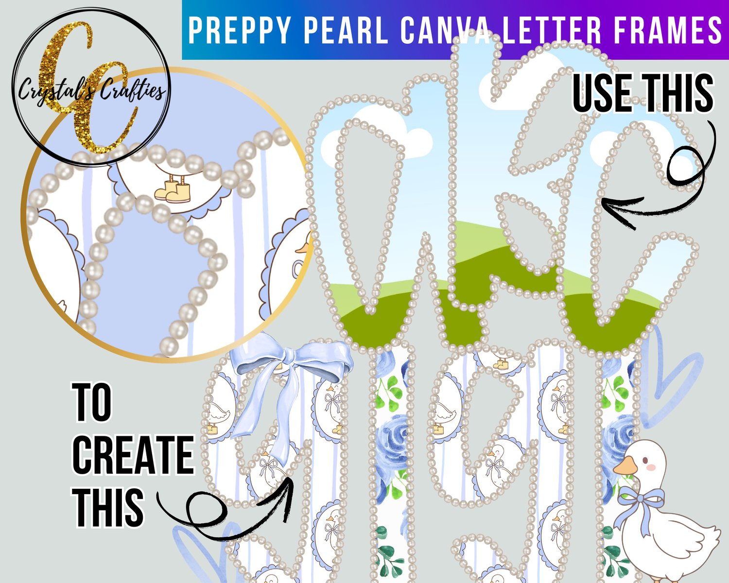 Preppy Pearl Canva Letter Frames