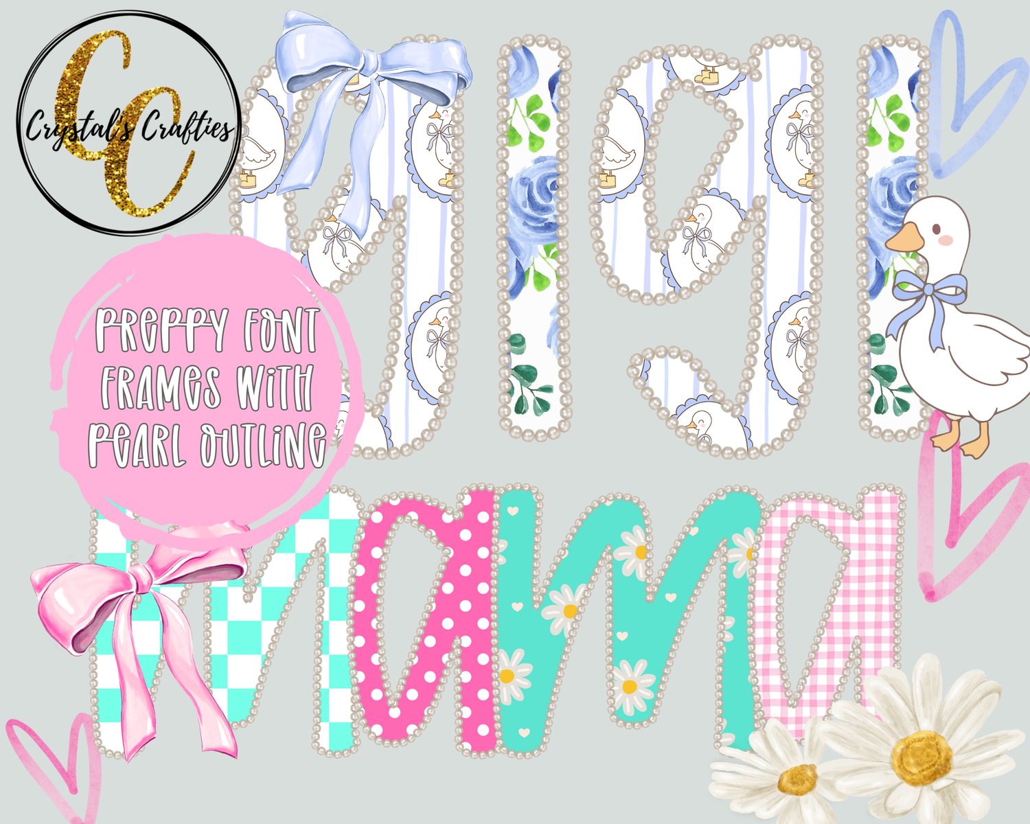 This alphabet is perfect for designers, small shop owners, and creators who want a trendy preppy pearl aesthetic with unlimited customization.