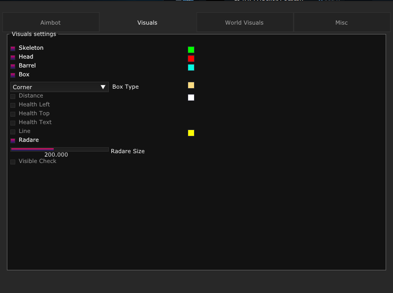 Premium Aimbot & Silent Aim Features🎯 with bone selection, trigger key binding, visible check, adjustable FOV and smoothness for legit or aggressive use ⚙️ Visual features 👁️ include skeleton, head, barrel, box, distance, health, snapline and radar customization 🛡️Integrated anti‑screenshot protection 🔒 adds an extra layer of security during use 💻 Designed for stability and flexible configuration.