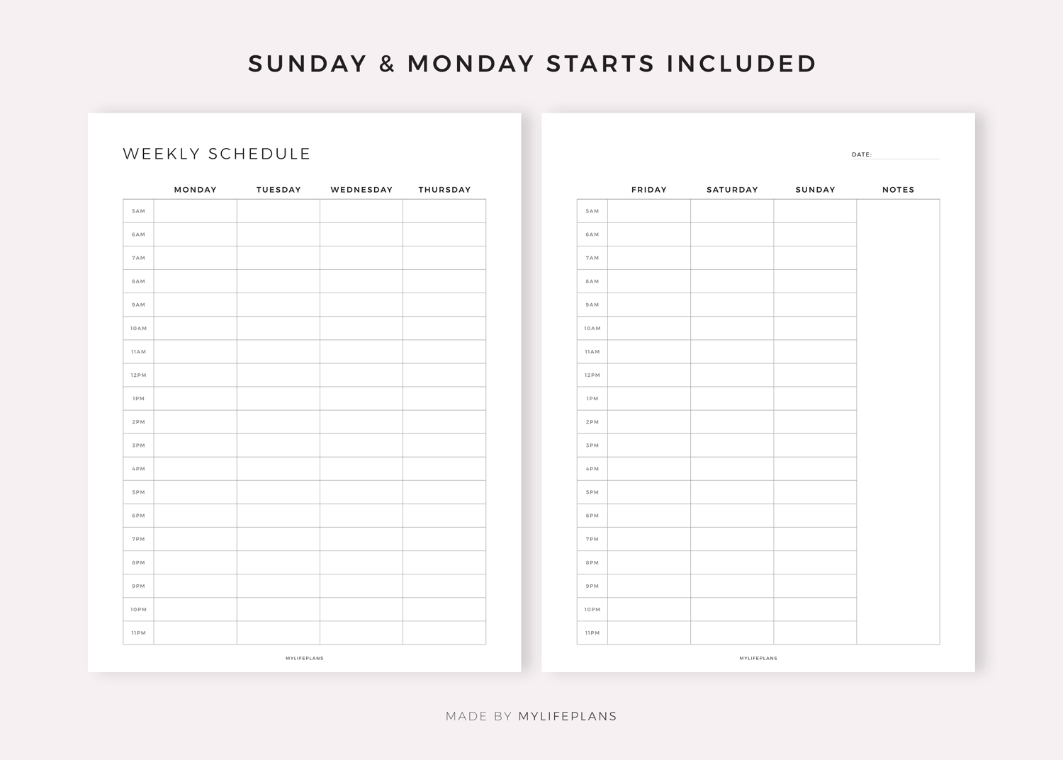 Hourly Weekly Schedule on 2 Pages, Digital Planner for Goodnotes, Notability, Ipad