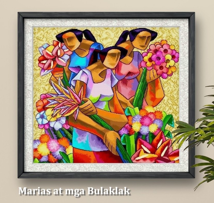 Filipino Art -Marias at mga Bulaklak Cross Stitch Pattern PDF Downloadable Digital Print