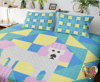 *Note: This pattern includes instructions for a baby (42.5" X 42.5"), lap (64.5" X 64.5"), twin (75.75" X 90"), queen (90" X 107"), and king (110" X 110") size quilt. * Blocks are traditional pieced blocks. Eyes are applique circles.