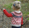 Josefien Cardigan uses a rich mix of traditional stranded colourwork motifs, put together to make a pretty and striking patchwork. By keeping the body and sleeves in two complementary colours, this design really allows you to experiment with any colour combination at the yoke. Bobble stitch is used to decorate the neckline and cuffs. The cardigan is knitted in the round from the bottom up in 3 pieces: the base + 2 sleeves. These are then put on one needle so that the yoke can be knitted in one piece. Instructions will also work if you wish to knit a pullover.