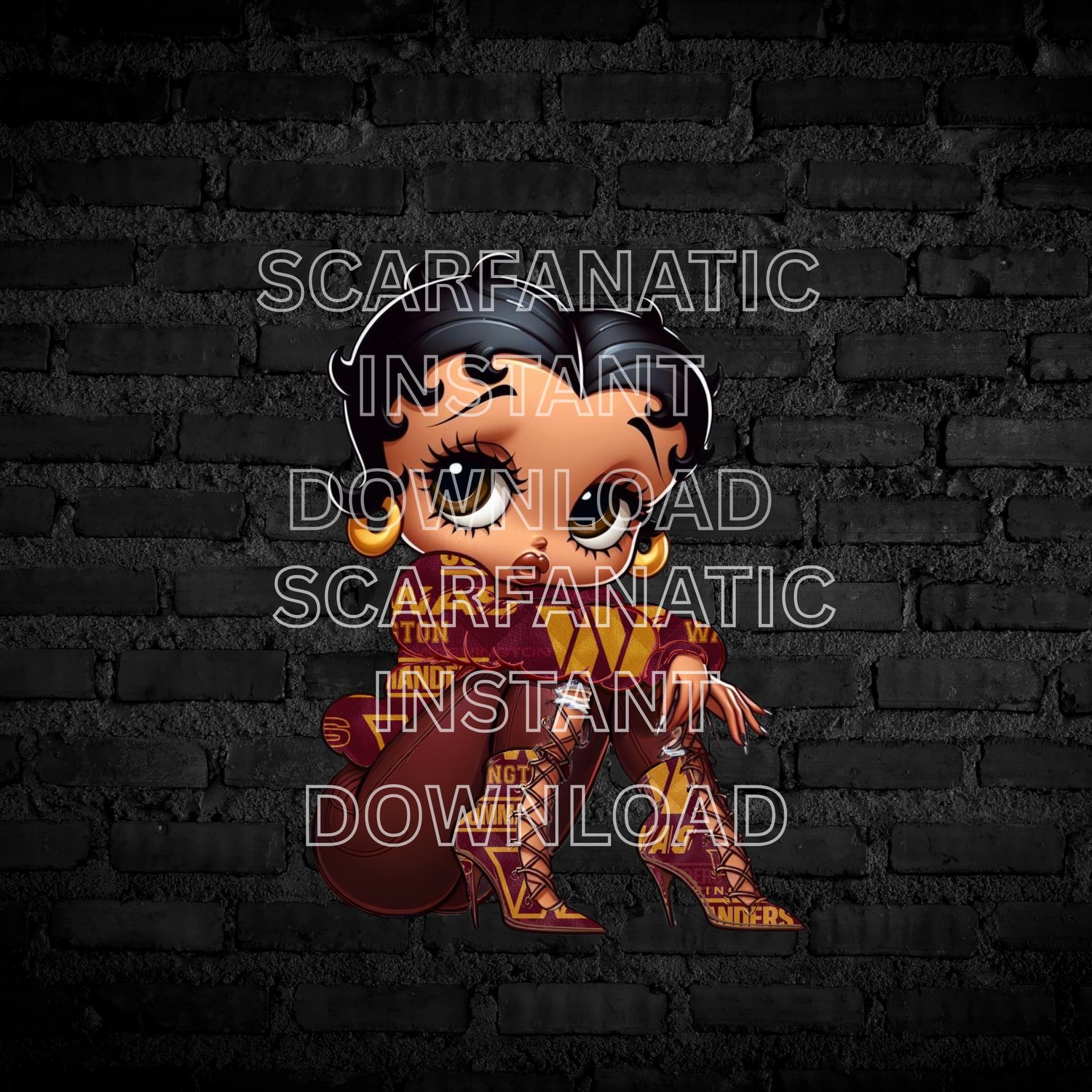 Betty Boop in Washington Colors Leather Jacket with Matching High Heels and Gold Earrings, Sublimation, PNG, DTF, 300DPI, high resolution