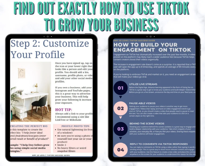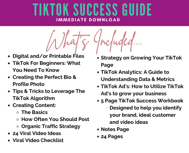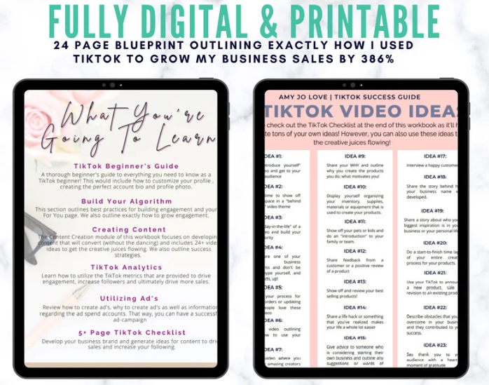 Ready to finally utilize TikTok to grow your business? Don't worry- I got you! I created a 24 page printable and digital workbook that outlines EXACTLY the steps I took to create valuable content on TikTok to increase my monthly sales by over 386%.