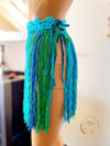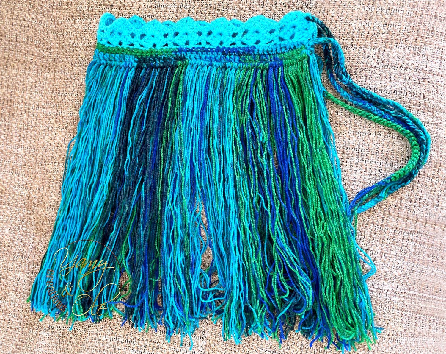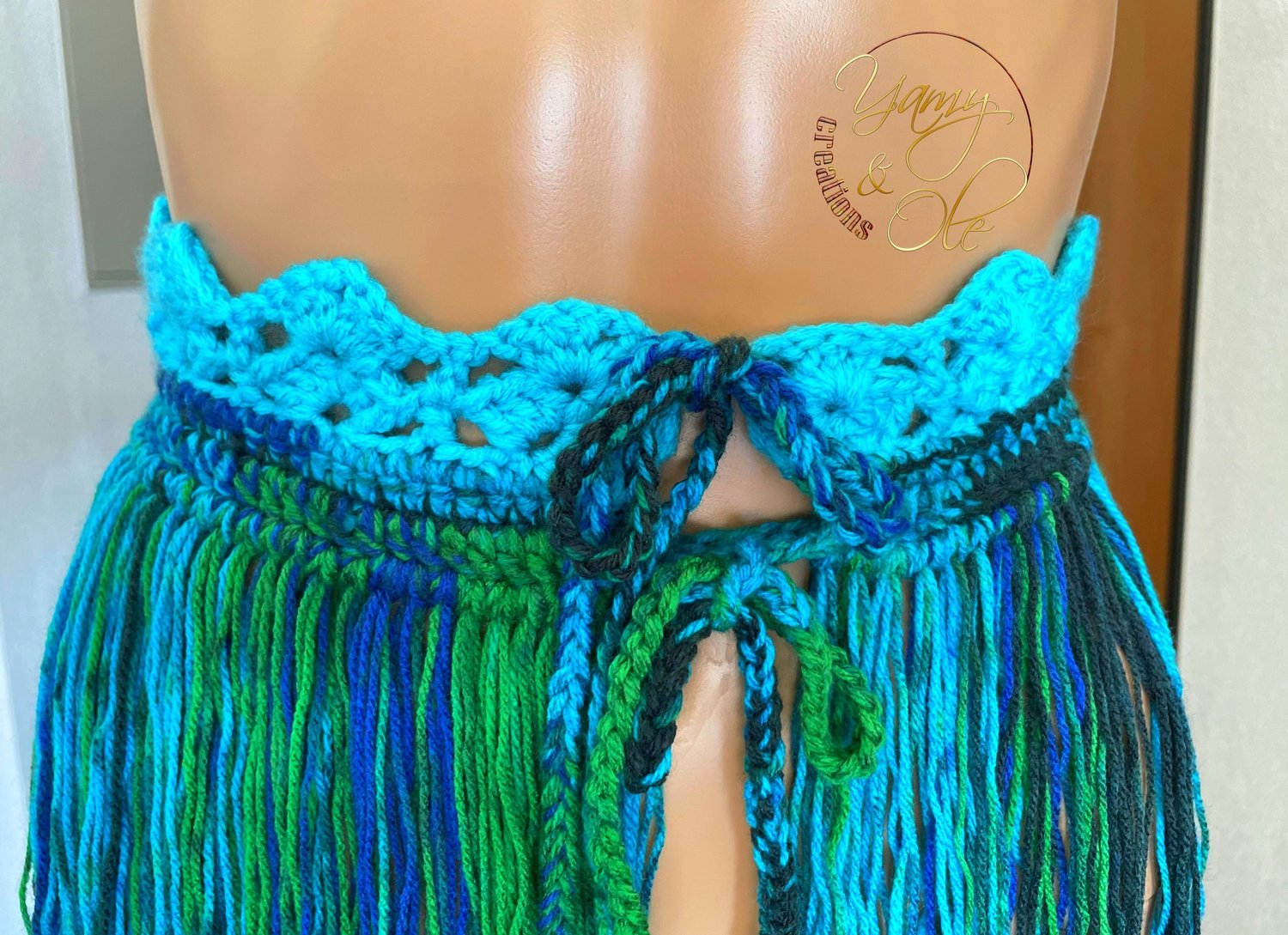 Looking for the perfect accessory to complete your beach look this summer? Look no further than our beautiful, original, and colorful crochet pareo in stunning shades of blue and green with playful fringes.