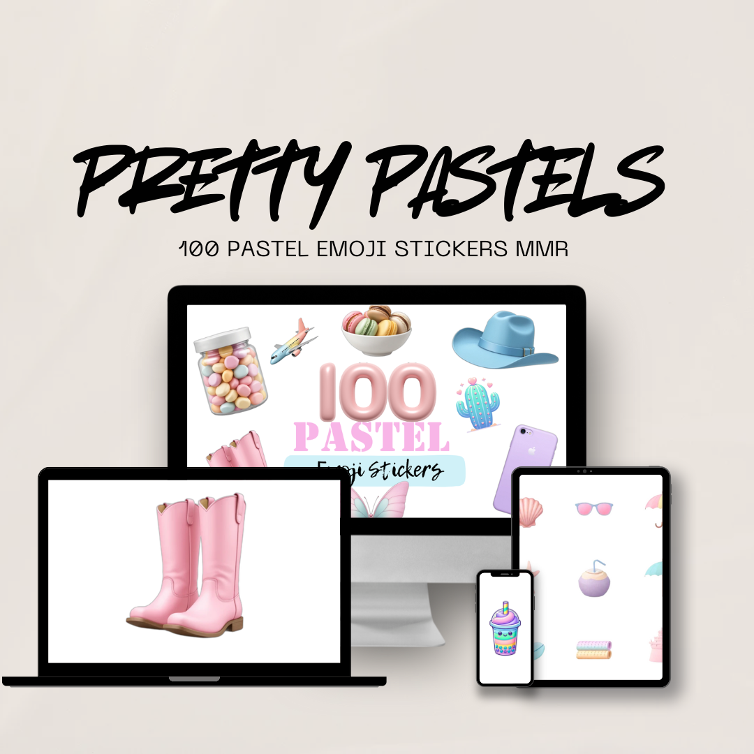 100 Cute Pastel Emoji PNGs – Fun Kawaii Emoticons with Instructions & MRR | Digital Stickers for Planners, Journals, Sublimation