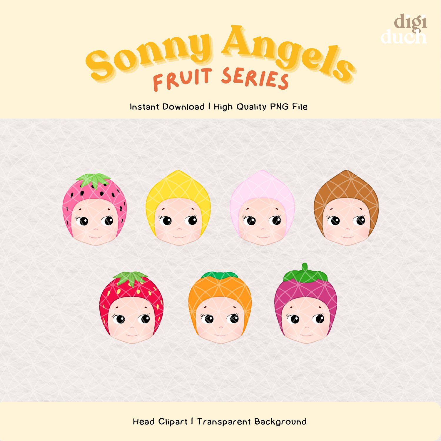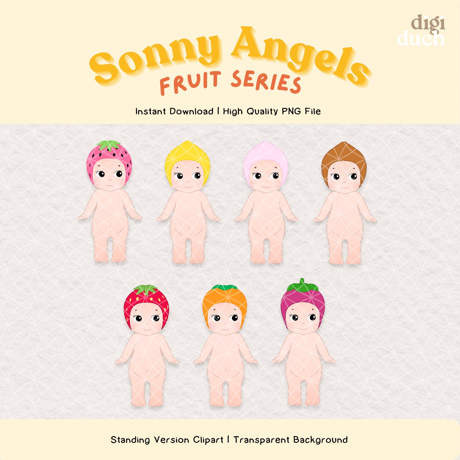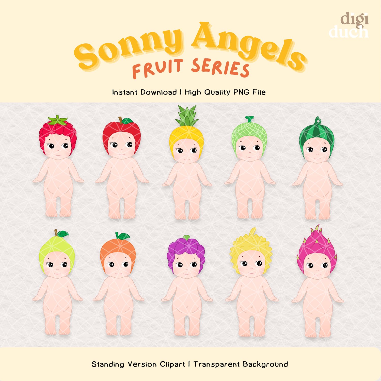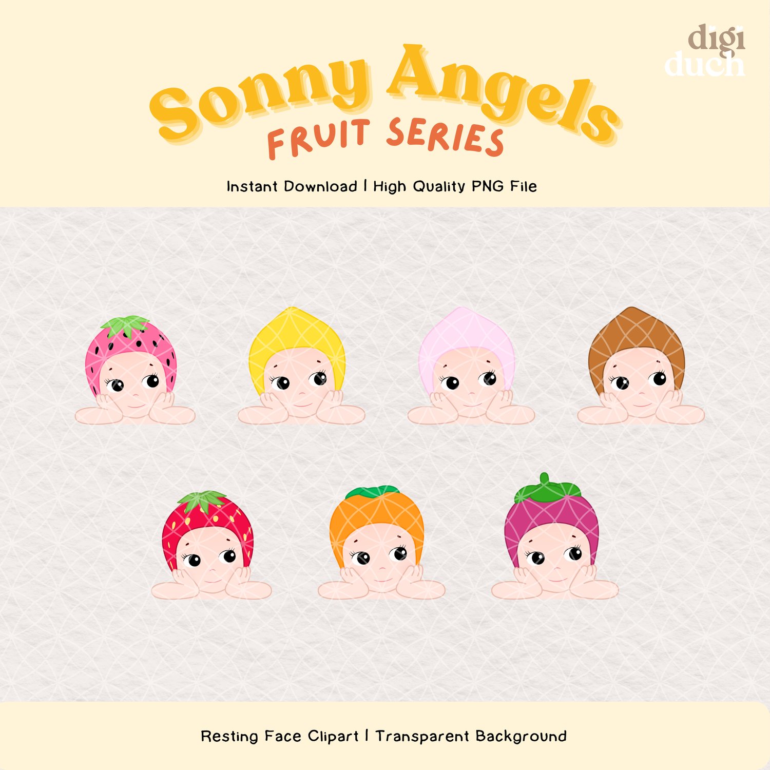 50+ Sonny Angels Fruit Series Clipart Set, High Quality Kawaii PNG Bundle, Instant Download, Digital Stickers Print-and-Cut, Commercial Use