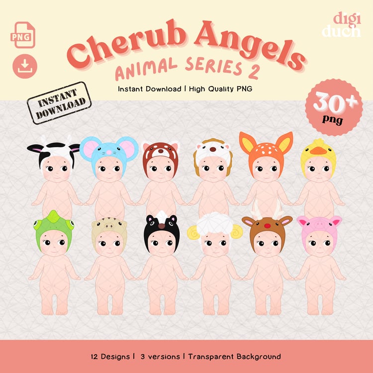 Decorate your projects with Kawaii Sonny Angels Printable Clipart! This digital PNG sticker set is perfect for print and cut, making it ideal for commercial use in planners, crafts, and DIY gifts. Instantly download and start creating adorable designs today!